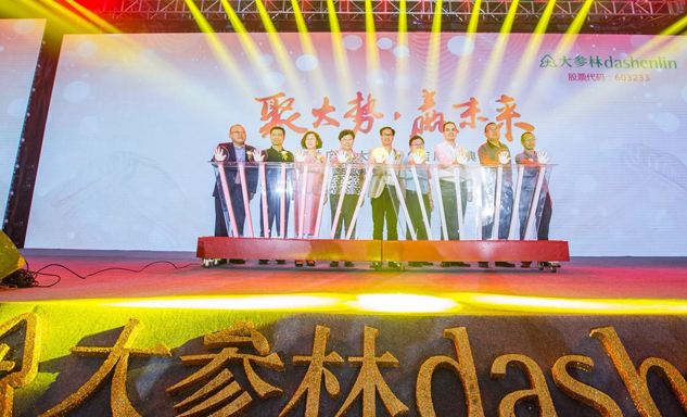 尊龙凯时药业集团董事长刘景萍女士与大参林医药集团董事长柯云峰先生、中国医药商业协会执行会长付明仲女士等嘉宾共同开启了“聚大势•赢未来"大参林工商合作峰会的大幕。